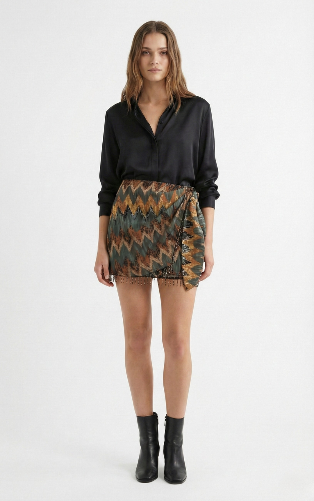 Mini Saia vintage tipo miçanga com zíper lateral