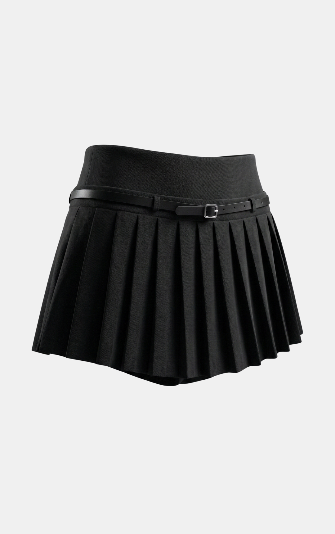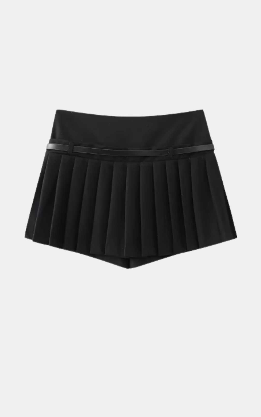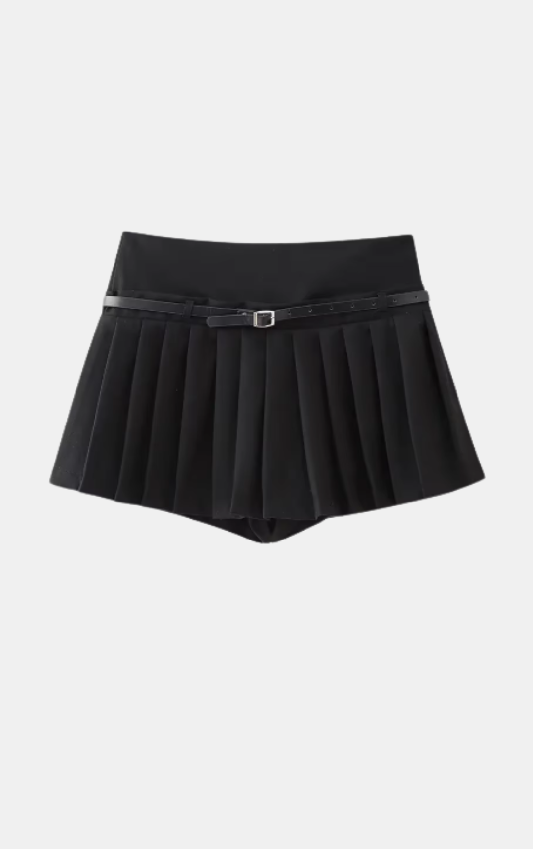 Mini Saia com cintura alta, acompanhada de cinto e zíper lateral